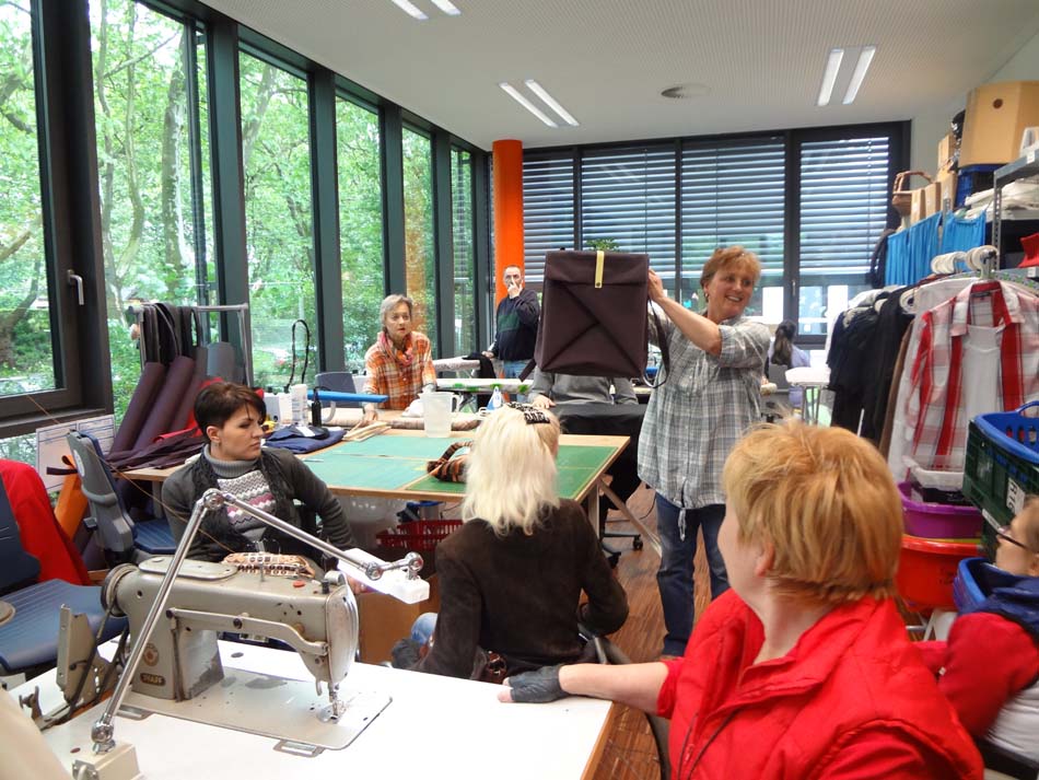 Нас провели по всем мастерским, где инвалиды работают по разным направлениям: и по изготовлению деревянных сувениров, и по сборке элементов для жалюзи, и по ландшафтному дизайну, и по упаковке деталей в коробки, и по изготовлению не сложной мебели, и по изготовлению частей для смесителей… Чего там только нет! Тут же и большие склады для продукции. «Откуда приходят заказы на продукцию? « – спросили мы управляющих. Нам пояснили, что частная фирма делает в мастерскую заказ на определенную продукцию, далее в мастерской этот заказ выполняют и готовый материал отправляют заказчику. После этого заказчик решает: если его все устраивает, то он перечисляет деньги за товар. А если не устраивает, то просто возвращает весь заказ. Вся работа идет без всяких авансов и предоплат. Теперь я понимаю, как выстраиваются деловые отношения в Германии между Заказчиком и Исполнителем и насколько развито чувство ответственности у немцев.