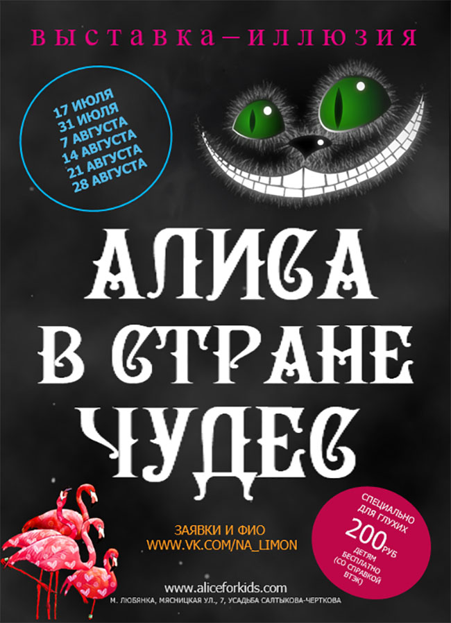 Погулять по «чудесатому» особняку, стать гостем воздушной библиотеки, посмотреть на самый большой в мире калейдоскоп и «исчезающий сад», очутиться в «комнате сновидений» или игровой комнате «Лужайка Алисы» смогут все желающие города на масштабной выставке, посвящённой 150-летию невероятной сказки «Алиса в стране чудес».