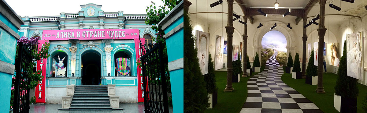 Выставка организована в шикарном особняке на Мясницкой улице — усадьбе Салтыкова-Черткова. Именно здесь раньше находилась знаменитая библиотека Черткова, которую посещал Кэрролл во время путешествия.