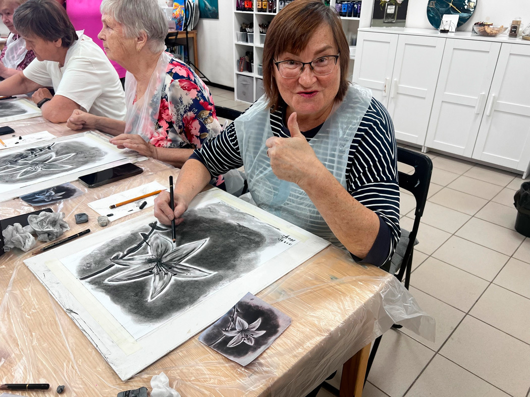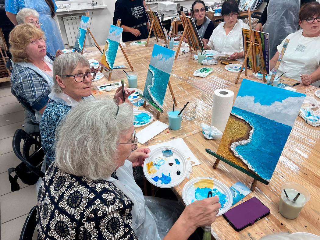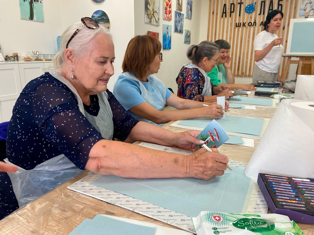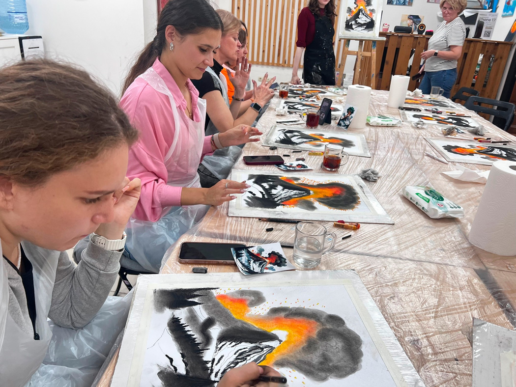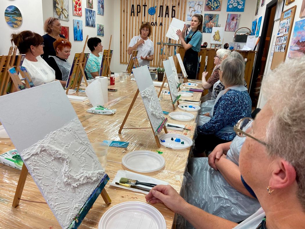 В течении 2-х месяцев участники клуба «Ветеран» проходили мастер-классы по рисованию в пермской АртЛабШколе, где в 4-х разных техниках рисовали картины. Дополнительным бонусом проекта стал 5-ый мастер-класс, на котором участники народного ансамбля жестовой песни «Поющие руки» завершили «рисовальный» марафон нарисовав вулкан, которыми они совсем недавно любовались на Камчатке в рамках гастрольной поездки.